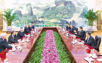 新华社北京10月9日电 (记者杨依军)10月9日下午,国家主席习近平在人民大会堂会见美国国会参议院多数党领袖舒默率领的美国国会参议院两党代表团。