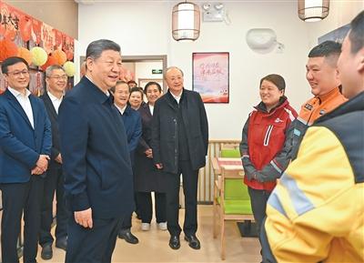 10日上午,习近平在西城区新街口街道父母食堂考察时,同在这里休息的快递小哥亲切交流。 |