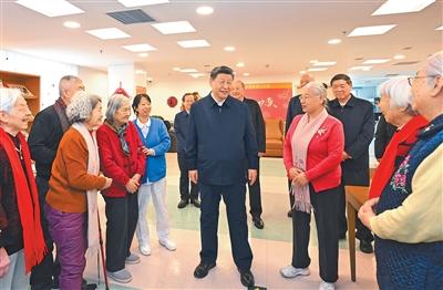 10日上午,习近平在西城区“吾老·新街”养老服务街区银龄老年公寓考察时,同老人们亲切交流。 |