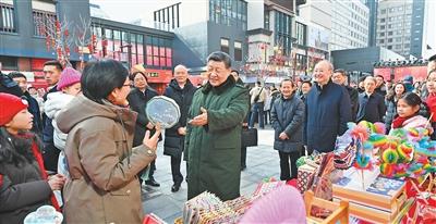 10日上午,习近平在东城区隆福寺街区新春市集考察时,同现场群众亲切交流。 |